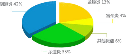 上图为近年来妇科炎症发病比率。妇科炎症发病率每年以近10%的速度递增,对女性健康影响不可小视。